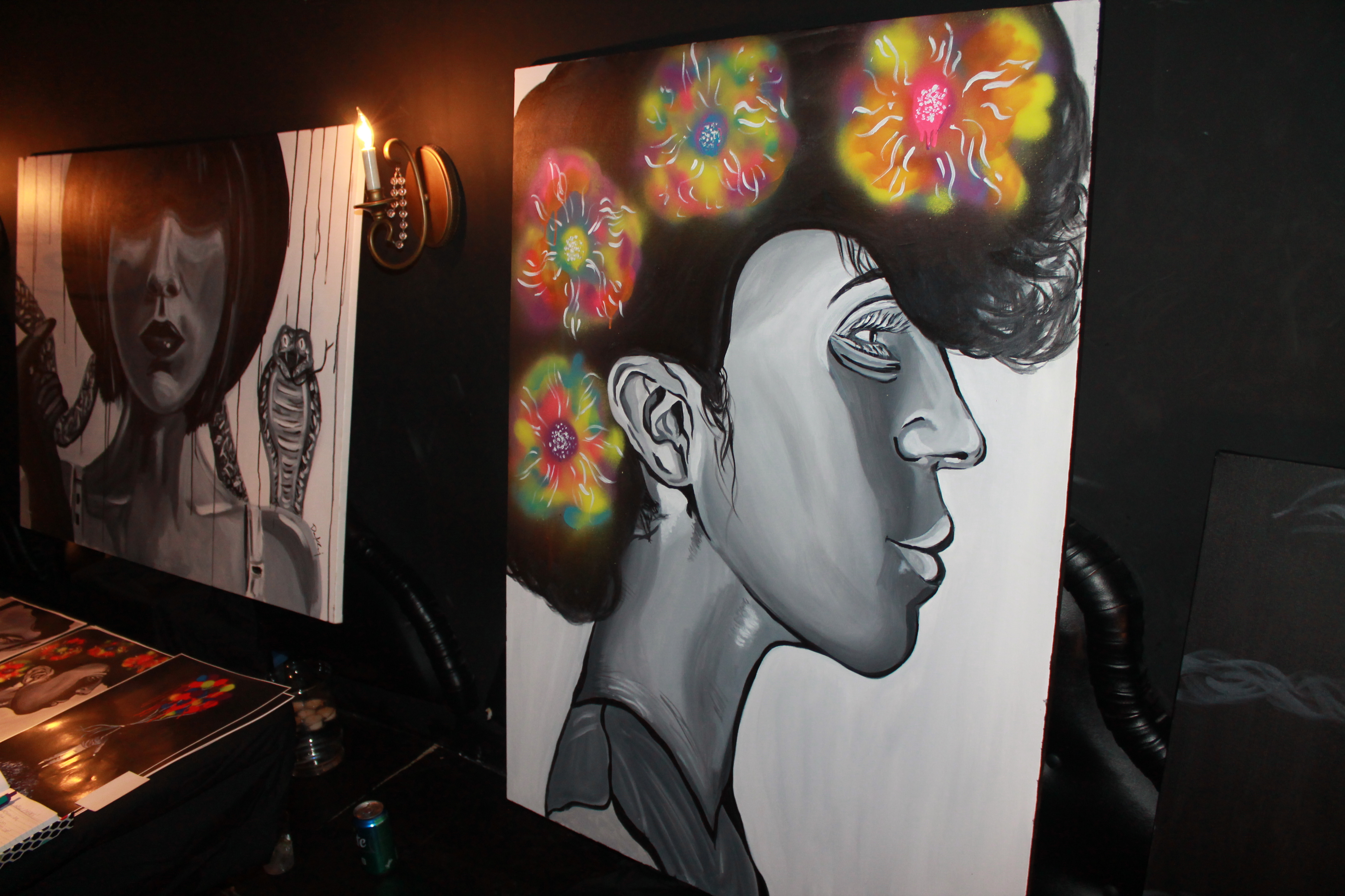 Somewhere in between bobbing my head to Zack’s music and talking about how good he was with the person next to me, I noticed the work of Dorentina, a local painter and college student. She was such a sweetheart and her work is absolutely amazing!